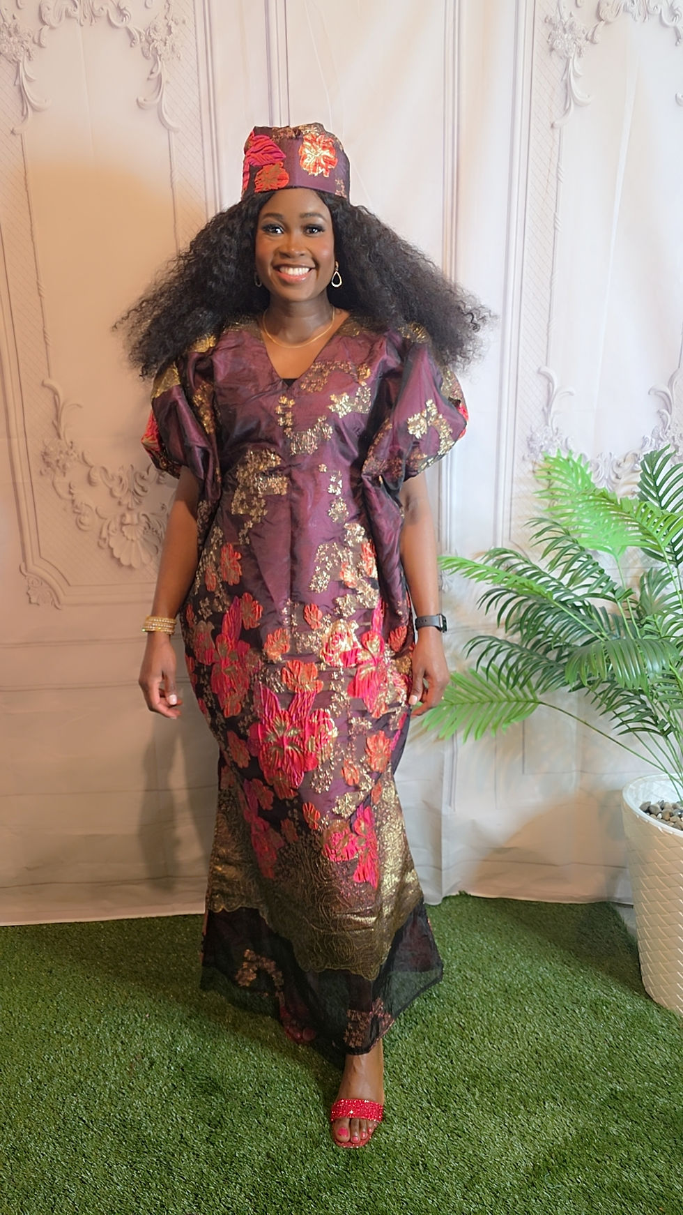 Make a statement with our Black and Gold Bubu – a stunning blend of elegance and tradition. Featuring intricate beading at the center and complemented by matching hair accessories, this flowing ensemble exudes luxury and charm. Perfect for special occasions, it’s designed to make you feel confident, radiant, and effortlessly stylish.